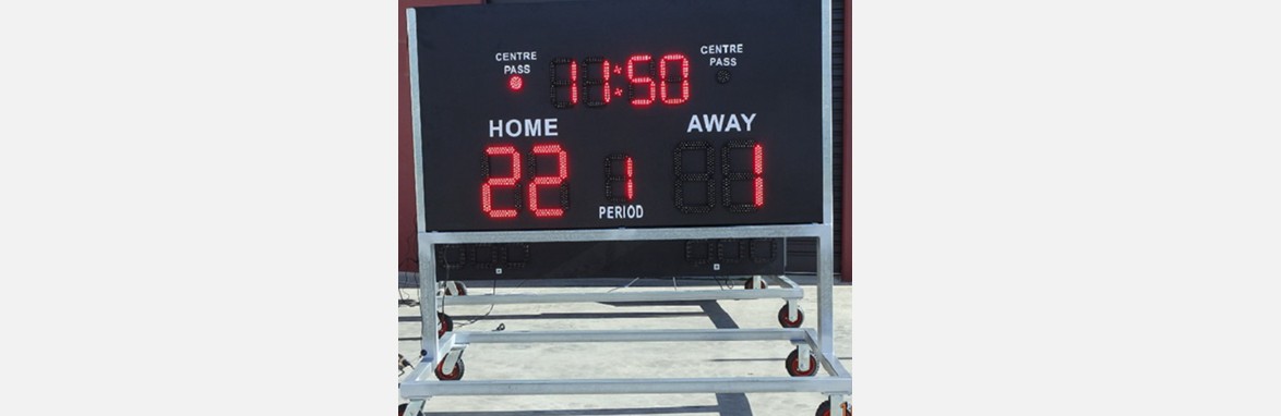 The prefect outdoor scoreboard for netball field. 12'' super-bright red LED numbers for scores last over 100000 hours of use.Visibility over 300 meters